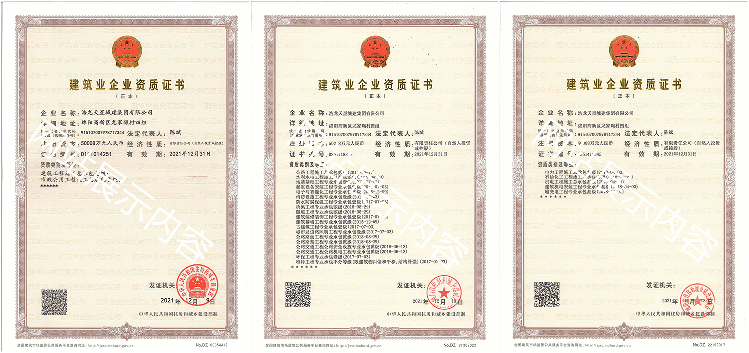浩龍?zhí)煨浅墙瘓F有限公司,2007年成立于“李白故鄉(xiāng)、中國科技城”—四川省綿陽市,企業(yè)注冊資本金5.0008億元。公司共有27項建筑業(yè)企業(yè)資質,其中國家一級資質11項,二級資質10項,三級資質5項,特種資質不分等級1項,類別涵蓋建筑、市政、水利、機電、隧道、起重設備安裝等基礎及未來發(fā)展重點專業(yè)。公司...